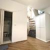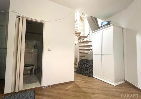 Im Erdgeschoss befindet sich das Schlafzimmer mit einem kleinen Bad. Das Obergeschoss ist über eine kleine platzsparende Wendeltreppe erreichbar und so gelangen Sie in den Wohnbereich mit offener Küche.