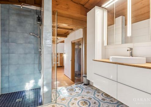 Falls Sie weniger Platz benötigen, besteht die Möglichkeit, lediglich die Einheit 2, also die Maisonette-Wohnung auf den zwei Ebenen im Erd- und Dachgeschoss mit den Nutzflächen (Wellnessbereich) im Untergeschoss zu erwerben.