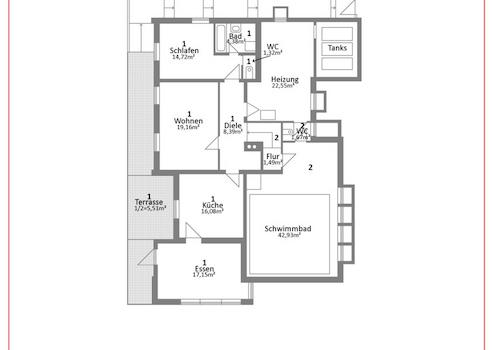 Einheit 1: 3-Zimmer-Wohnung im Untergeschoss