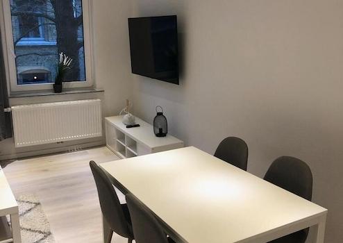 2 Zi.Whg., möbliert, 1. OG, mit Balkon. Modene und helle Ausstattung. 1 Wohnzimmer mit integrierter Essecke für 4 Personen; 1 Schlafzimmer mit Doppelbett; gut ausgestattete Wohnküche und 2 kleine Abstellräume. Für max. 2 Personen (Paar) geeignet. Miete 1700,- € inkl. Neben- u. Energiekosten. Nur für Nichtrauch bzw. das Rauchen ist nur auf dem Balkon gestattet.