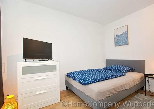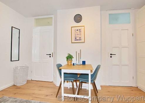 Modern apartment with balcony and internet access on the ground floor of a well-maintained apartment building in a very popular location in Wuppertal's Zoo district. Excellent public transport connections: bus, suspension railway, and suburban railway are within walking distance. Free parking is available on the street. The A46 motorway towards Düsseldorf is only 4 minutes away. This is a non-smoking apartment.