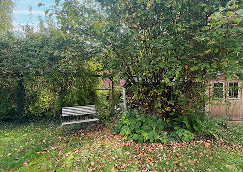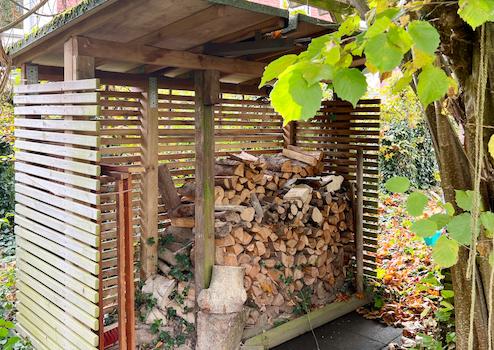 Im Erdgeschoss erwartet Sie ebenfalls ein einladendes sonnendurchflutetes Wohn-/ Esszimmer mit schönem Vollholzparkett. Hervorzuheben ist der stilvolle Kaminofen im Wohnzimmer, der in den kälteren Monaten eine wohltuende Wärme spendet. Von hieraus gelangen Sie direkt auf die Terrasse mit ausfahrbarer Markise, die bei Bedarf vor starker Sonneneinstrahlung schützt, sodass dem Genuss sonniger Stunden nichts im Wege steht. Der Garten bietet viel Potenzial für individuelle Gestaltungsideen. Der zum Nachbarn angrenzende Holzschuppen, kann als Brennholzlager für den Kaminofen oder zum Abstellen von Gartengeräten genutzt werden. Ein separater Fahrradschuppen erweitert die Stauraummöglichkeit. Zurück im Haus, rundet ein separates Gäste-WC das Erdgeschoss ab.