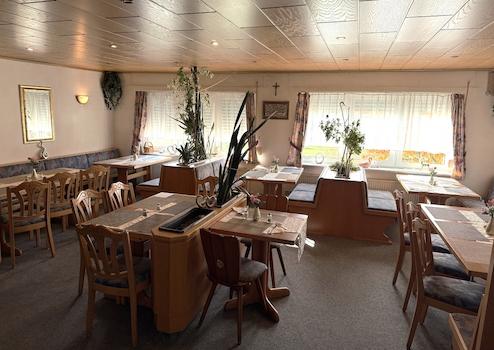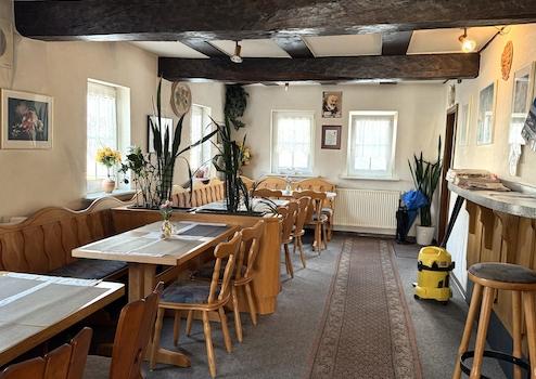 Im Erdgeschoss befindet sich eine vollständig ausgestattete Gaststätte mit Gastraum, Thekenbereich, Küche und getrennten Sanitäreinrichtungen. Diese Fläche eignet sich ideal für gastronomische Nutzung oder alternative gewerbliche Konzepte.