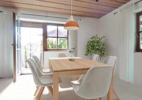 Willkommen in Ihrem neuen Zuhause, einem charmanten Haus aus dem Jahr 1995 mit einer Wohnfläche von 155m². Beim Betreten des Hauses gelangen Sie in einen großzügigen Eingangsbereich, der direkt in das helle Wohnzimmer führt. Hier laden zwei Kachelöfen zu gemütlichen Abenden ein und schaffen eine behagliche Atmosphäre.