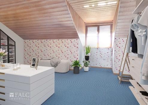 Im Obergeschoss befinden sich drei Schlafzimmer, die individuell gestaltet werden können. Das Hauptschlafzimmer bietet viel Platz und Komfort. Ein weiteres Zimmer eignet sich hervorragend als Kinderzimmer oder Büro. Die Ankleide bietet zusätzlichen Stauraum und sorgt für Ordnung.