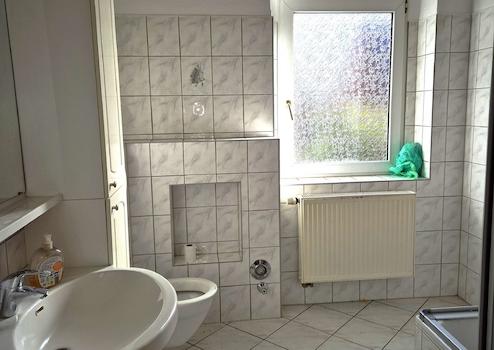 - Tageslichtbad mit Dusche, WC komplett gefliest