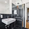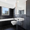 Das Badezimmer überzeugt mit einer hochwertigen Ausstattung, Dusche und Badewanne. Ein praktischer Einbauschrank sorgt für zusätzlichen Stauraum.