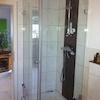 Hauptbad mit Dusche und Eckbadewanne, mit Fenster