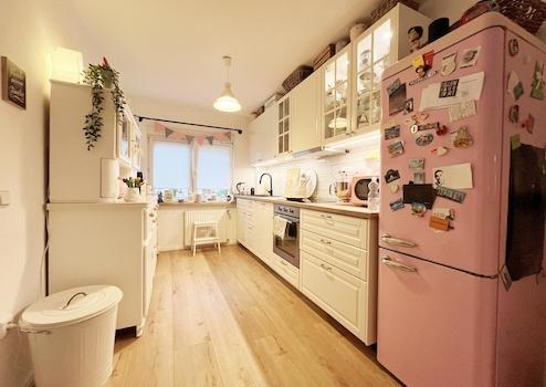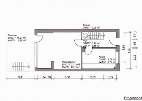 Balkon, Terrasse, Garten, Keller, Duschbad, Einbauküche, Laminat, Fliesen
