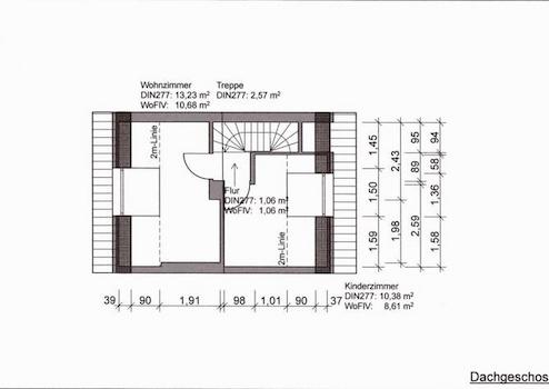 Das Obergeschoss verfügt über zwei Schlafzimmer, von denen eines Zugang zu einem Balkon bietet. Ergänzt wird diese Etage durch ein Tageslichtbadezimmer mit Dusche, WC und Waschtisch. Im Dachgeschoss stehen Ihnen zwei weitere vollwertige Schlafzimmer zur Verfügung, sodass insgesamt vier Schlafzimmer gegeben sind – ideal für Familien oder als Arbeits- und Gästezimmer.