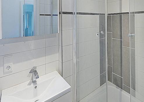 Das vordere, großzügige Einfamilienhaus erstreckt sich über drei Etagen und bietet mit einer Wohnfläche von ca. 160 m² viel Platz auch für eine größere Familie. Im Erdgeschoss befinden sich drei geräumige Zimmer, die flexibel als Schlaf-, Arbeits- oder Gästezimmer genutzt werden können, sowie ein modernes Duschbad.