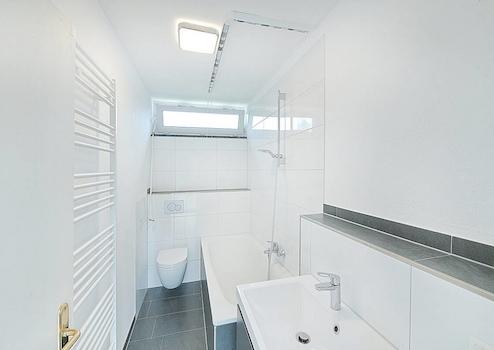 Im Kellergeschoss stehen Ihnen neben Heizungs-, Wasch- und Abstellräumen weitere nutzbare Flächen zur Verfügung. Die Brennwertheizung wurde erst 2023 erneuert. Besonders hervorzuheben ist das Souterrainzimmer mit großen Fenstern und Blick ins Grüne, das sich ideal als Gäste- oder Kinderzimmer, Büro oder Hobbyraum eignet. Ein zusätzliches Duschbad mit WC bietet hier weiteren Komfort.