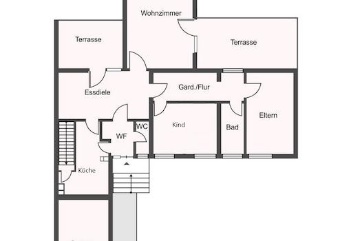 Hinter dem Haus erwarten Sie zwei Terrassen, die einen wunderbaren Rückzugsort inmitten des uneinsehbaren Gartens bieten. Hier können Sie die Ruhe genießen, und ein Wintergarten- oder sogar ein massiver Anbau wäre zusätzlich realisierbar.