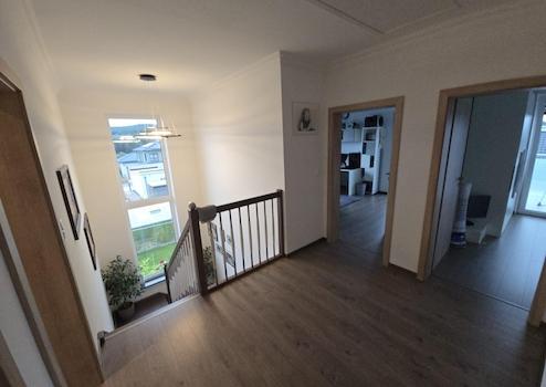 Das Haus begeistert mit hellen, offenen Räumen, einer stilvollen Einbauküche, Fußbodenheizung und einem Wintergarten mit Blick ins Grüne. Im Obergeschoss erwarten Sie ein lichtdurchflutetes Bad, ein Elternschlafzimmer mit Ankleide sowie zwei Kinderzimmer mit Balkonzugang.
