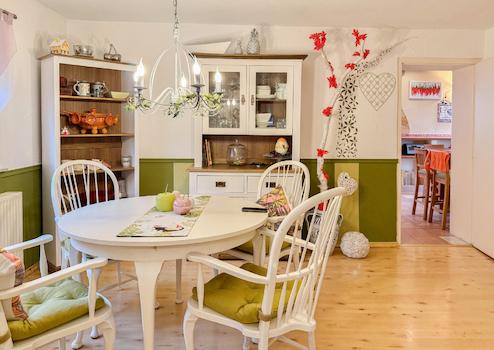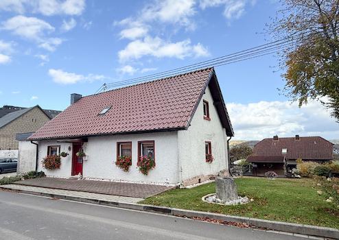 Dieses charmante Einfamilienhaus aus ca. 1914 befindet sich in herrlicher Höhenlage auf einem großzügigen Grundstück von rund 1.219 m², das sich bei Bedarf auch in einen separaten Bauplatz aufteilen ließe. Das Haus präsentiert sich gepflegt und bietet eine Wohnfläche von etwa 132,41 m², die sich über Erd- und Dachgeschoss erstreckt. Im Erdgeschoss empfängt Sie ein großer Wohnbereich mit Kaminofen, von dem aus Sie sowohl den Balkon als auch den Garten erreichen. Das Esszimmer liegt direkt neben der Küche, welche ebenfalls über einen Zugang zum Balkon verfügt. Ein helles Tageslichtbad mit Wanne und Dusche sowie ein weiteres Zimmer, vervollständigen diese Ebene. Die Raumaufteilung ermöglicht komfortables Wohnen auf einer Ebene und eignet sich damit auch hervorragend für das Wohnen im Alter. Im Dachgeschoss stehen zwei Schlafzimmer und ein kleiner Raum, der sich als Büro oder Abstellfläche eignet, zur Verfügung. Der Spitzboden bietet zusätzlichen Stauraum. Eine Einzelgarage mit elektrischem Tor sowie ein Kriechkellerraum sind ebenfalls vorhanden. Das gepflegte Grundstück mit Baumbestand, Gartenhäuschen und beeindruckendem Fernblick macht dieses Zuhause besonders attraktiv. Der Ort selbst besitzt eine eigene Kindertagesstätte und eine Grundschule – ideal für Familien.