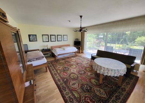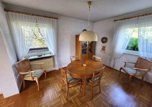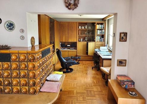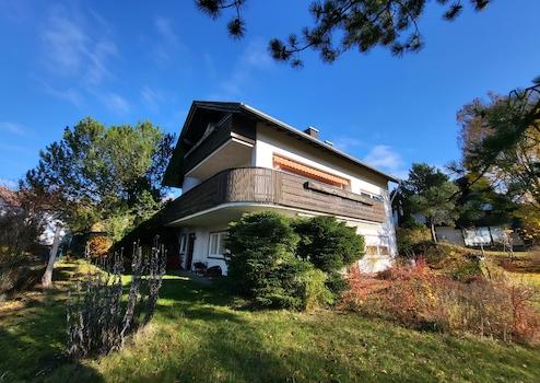 Das hier angebotene, voll unterkellerte und sofort bezugsfreie, Einfamilienhaus mit kleiner Einliegerwohnung befindet sich in absoluter Bestlage von Hof-Krötenbruck. Es wurde im Jahre 1979 in Massivbauweise erbaut und teilt sich auf ca. 185 m² Wohnfläche im Erdgeschoss und 1. Obergeschoss derzeit wie folgt auf: Im Erdgeschoss befinden sich der großzügige Eingangsbereich mit Windfang, Treppenhaus und einer Garderobe, ein großer Wohnbereich mit Esszimmer und Ausgang auf den ca. 30 m² großen Balkon, die Küche mit Abstellraum, ein Bibliothekszimmer, welches auch als Schlafzimmer oder als Arbeitszimmer genutzt werden kann, sowie ein Badezimmer. Im 1. Obergeschoss stehen ein großes, durchaus auch in 2 Räume teilbares, Schlafzimmer mit zus. Ankleidezimmer und Balkon, ein weiteres Zimmer sowie ein großes Bad zur Verfügung. Im Souterrain befindet sich u.a. ein großer Hobbyraum und ein erweiterbares Einliegerappartement (mit sep. Eingang und perfekt für größere Kinder, Oma, Opa, Pflegekräfte, als Büro, ...) mit einem Wohn- und Schlafbereich, einer kleinen Küche und einem Duschbad. Der Gesamtzustand des Hauses ist gut, wobei wir aber nicht verschweigen wollen, dass die eine oder andere Modernisierungsmaßnahme durchaus anstehen wird. Beheizt wird das Haus durch eine Ölzentralheizung.