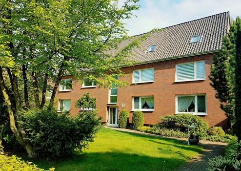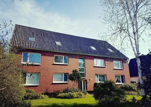Das Mehrfamilienhaus in der Barsbütteler Straße 29 präsentiert sich als gepflegtes Wohngebäude mit insgesamt sechs Mietparteien. Die hier angebotene 3-Zimmer-Wohnung befindet sich im 1. Obergeschoss – von der Straßenseite aus gesehen auf der rechten Seite – und bietet einen angenehmen Grundriss mit funktionaler Raumaufteilung.
