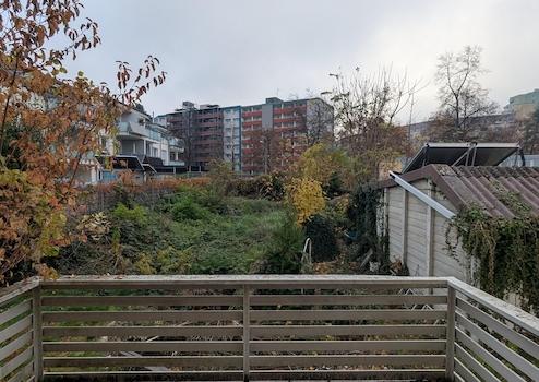 Das Grundstück liegt in einem Bereich ohne Bebauungsplan, was zusätzliche Gestaltungsspielräume eröffnet. Denkbar sind z. B. ein Anbau für ein Bad im Erdgeschoss oder sogar ein weiteres Gebäude im hinteren Grundstücksbereich. Die Stadt Freiburg bietet hierzu Beratung über das BeratungsZentrum Bauen (BZB) an.