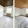 Im OG wurden beispielsweise die Bodenbeläge erneuert (u.a. im Flur Granit, Laminat im Schlafzimmer, neue Fliesen im Wohn-/Esszimmer...), Wohnraumzusammenführung Wohnzimmer/Esszimmer.