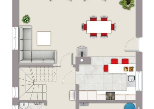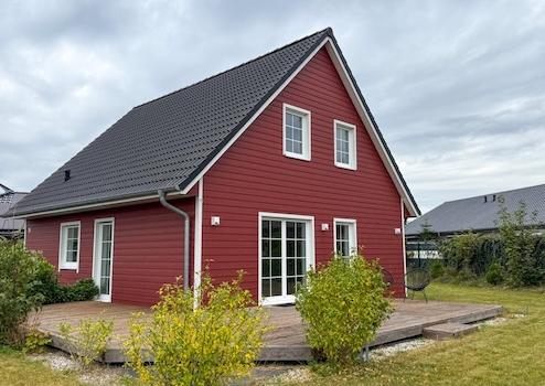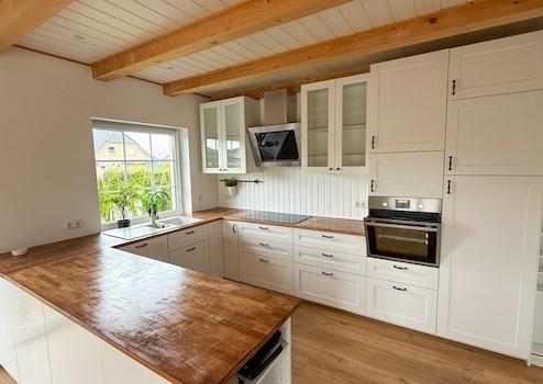 Großes Zweifamilienhaus unter Reet mit moderner Ausstattung Dieses reetgedeckte, modern und zeitgemäß ausgestattete Zweifamilienhaus verfügt über eine reale Teilung in zwei Haushälften. Beide Haushälften verfügen über ...