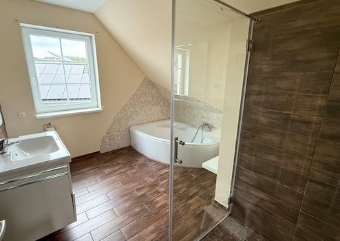 Dachgeschoss: Flur, 3 Zimmer, Tageslichtbad mit Eckbadewanne und bodentiefer Dusche;