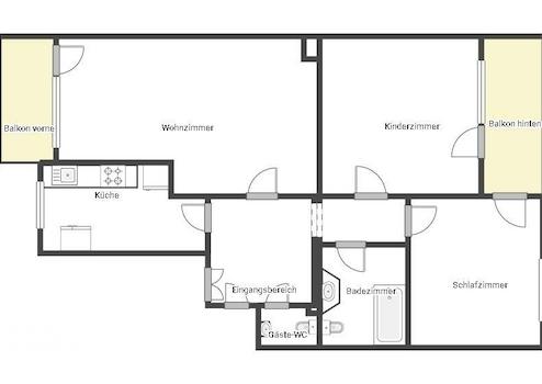 Besonders hervorzuheben sind die beiden Balkone, die zusätzlichen Wohnwert bieten: Während der eine Balkon ideale Bedingungen für entspannte Sonnenstunden schafft, lädt der zweite zu gemütlichen Abendstunden im Freien ein. Großzügige Fensterfronten sorgen für viel Tageslicht in allen Wohnbereichen und unterstreichen die angenehme Wohnqualität.