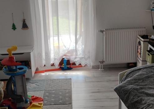 Das großzügige Wohnzimmer ist das Herzstück der Wohnung. Große Fensterflächen sorgen für reichlich Tageslicht und schaffen eine angenehme Wohlfühlatmosphäre. Hier können Sie sich eine gemütliche Sitzecke einrichten und den Ausblick auf die Umgebung und den großen Garten genießen.