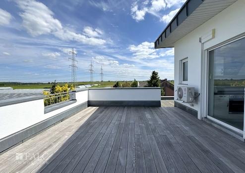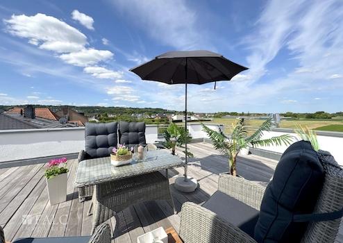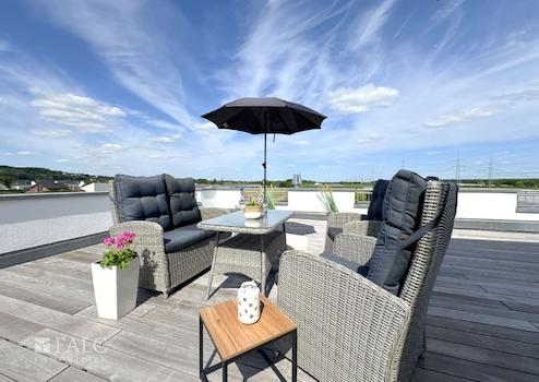 Ein weiteres Highlight ist die großzügige 106 qm Dachterrasse, die einen fantastischen Panoramablick bietet – perfekt für entspannte Stunden im Freien.