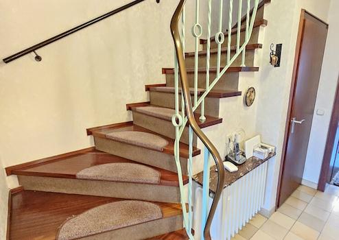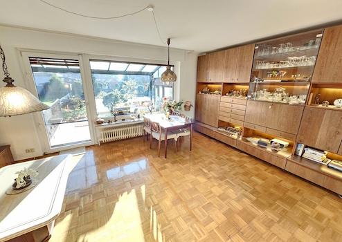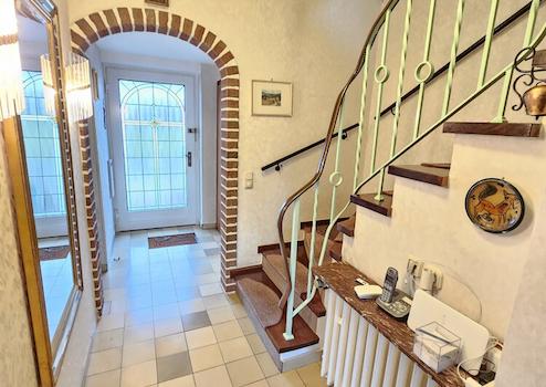Im Erdgeschoss befinden sich die Diele, ein Gäste-WC, die Küche sowie ein großzügiges Wohn- und Esszimmer mit direktem Zugang zur Terrasse und in den liebevoll angelegten Garten. Im Obergeschoss liegen zwei Schlafzimmer sowie ein Tageslichtbad mit Badewanne. Das ausgebaute Dachgeschoss bietet zwei weitere Zimmer und ein zusätzliches Badezimmer, sodass insgesamt ausreichend Platz und Komfort für eine Familie oder ein Homeoffice vorhanden sind. Eine massive Steintreppe führt vom Keller bis ins Dachgeschoss und unterstreicht die solide Bauweise des Hauses.