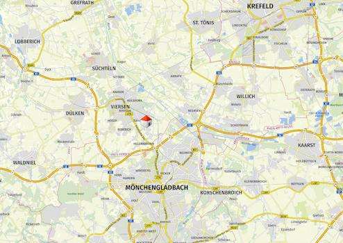 Die Immobilie befindet sich im südlichen Bereich des Stadtbezirks Alt-Viersen, in ruhiger, grün geprägter Wohnlage nahe der Stadtgrenze zu Mönchengladbach. Das Umfeld ist durch Einfamilienhäuser, einzelne Höfe und weitläufige Feld- und Grünflächen geprägt. Die Nähe zu den Niersauen mit ihren Rad- und Spazierwegen sorgt für einen hohen Freizeit- und Erholungswert.