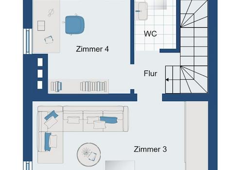 - Gäste-WC im EG, Badezimmer im OG, weitere WC im Dachgeschoss