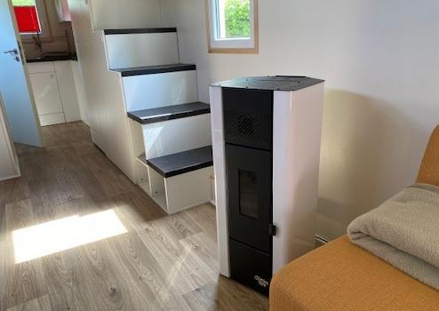 Das Tiny House ist im Jahr 2021 erstellt worden und hat aus statischen Gründen einen hochfesten Sicherheits-Stahlrahmen. Innen- und Außenverkleidung sind konsequent aus Holz gefertigt. Dazwischen sorgt eine Thermoisolierung für die erforderliche Umsetzung eines energieschonenden Beheizungskonzeptes. Thermopen- und sicherheitsverglaste Fenster runden die sehr gute Isolierung ab. Die Beheizung erfolgt über einen elektronisch gesteuerten Pelletofen sowie Infrarotheizungen. Die zusätzliche Klimaanlage sorgt für Kühlung, Heizung, Belüftung und Entfeuchtung.