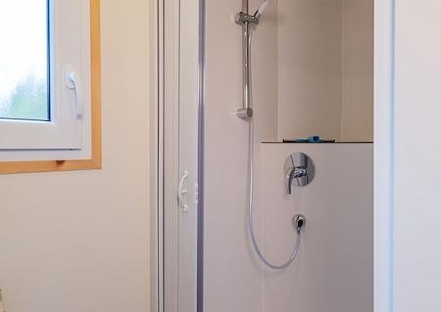 Das ganzjährig nutzbare Tiny House verfügt über ein Schlafloft, ein Eingangsloft, eine voll eingerichtete Küche, ein Bad mit Dusche sowie den Wohnbereich, Schreibtisch, Esstisch und schwenkbarem Fernseher. Die große Terrasse bietet viel Platz im Freien. Am Haus steht eine Parkmöglichkeit für einen PKW zur Verfügung. Ein Garten-Gerätehaus rundet das Angebot ab.