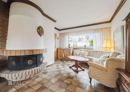 Mit rund 133 m² Wohnfläche, einem Vollkeller und einem ca. 659 m² großen Grundstück bietet das Haus alles, was es für ein komfortables Familienleben braucht. Das Erdgeschoss empfängt mit einem großzügigen, lichtdurchfluteten Wohn- und Essbereich, der sich über breite Fensterflächen zur Terrasse und in den Garten öffnet. In der Mitte des Raums: ein gemauerter Kamin, der an kühlen Tagen Wärme spendet und Gemütlichkeit schafft. Hier spielt sich das Leben ab – mit Blick ins Grüne, mit Raum für Gäste, Familie oder einfach für sich selbst.