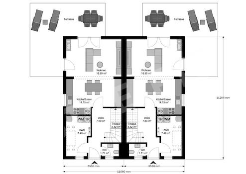 Besonders in Zeiten steigender Grundstückspreise ist dieses Doppelhaus eine optimale Lösung für modernes Wohnen.