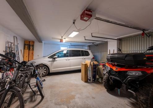 Für Fahrzeuge stehen eine eigene Auffahrt, mehrere Stellplätze sowie eine doppelte Tiefgarage zur Verfügung.