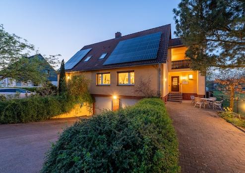 Die PV-Anlage (9,12 kWp, Inbetriebnahme 2022) inklusive 10 kW Speicher sowie die moderne BOSCH Wärmepumpe (2023) reduzieren die Energiekosten erheblich und machen das Haus technisch zeitgemäß ausgestattet.