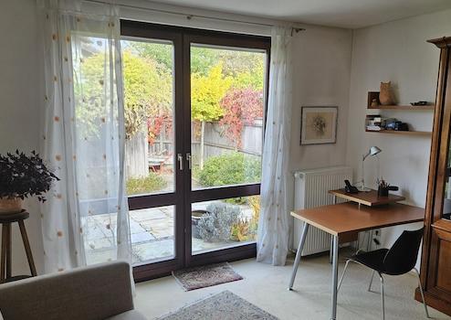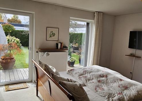 Ein offen gestalteter Wohn/Essbereich, das großzügige Schlafzimmer und ein helles Büro haben direkten Zugang zum Garten. Das durchdachte Raumkonzept bietet hierbei zahlreiche Möglichkeiten zur Innengestaltung.