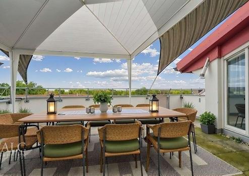 In amerikanischer Weise befinden Sie sich anschließend direkt im Herzen der Wohnung, dem Esszimmer, die große Fensterfront mit Zugang zum Ostbalkon trägt hier zur Wohlfühlatmosphäre bei. Ihre insgesamt 3 Balkone bieten Frischluftfanatiker und Sonnenanbetern einen Zufluchtsort, an dem Sie sich von der Harmonie der Jahreszeiten inspirieren lassen und die Alltagssorgen vergessen können.