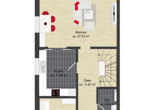 Die Doppelhaushälfte ist wie folgt aufgeteilt: