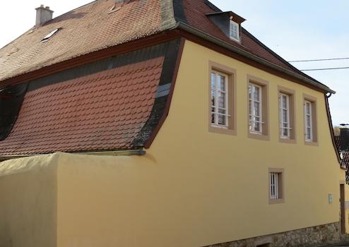 „ehem. Kath. Pfarrhaus, spätbarocker abgewalmter Mansarddachbau, 1750“