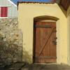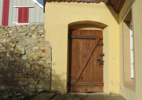 Vor dem Hauseingang ist ein Plateau mit einem kleinen Gartenanteil und der Terrasse angelegt. Von hier aus führt eine Treppe in den großen Garten und zu dem Eingang des Gewölbekellers sowie einem weiteren schlauchförmigen Keller unter dem Plateau und einem kleinen Lagerraum.