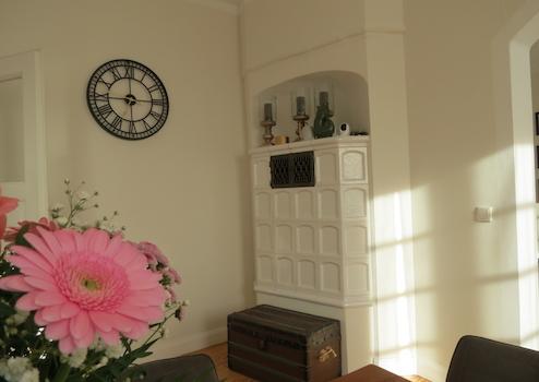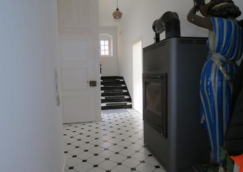Durch die alternative Beheizung mit einem Stahl-Holz-Ofen im Flur des Eingangsbereiches, wird auch das gesamte Heizungssystem durch einen eingebauten Wärmetauscher unterstützt.