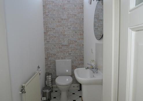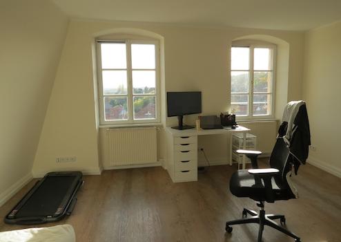 Denkbar wäre auch die Nutzung als Zweifamilienhaus, da sich am Bad in einem der Schlafzimmerzimmer die Anschlüsse der ehemaligen Küche der Haushälterin des Pfarrers befinden.