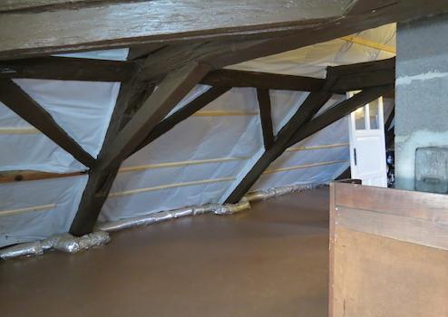 Verfolgen Sie die Treppe weiter nach oben, so gelangen Sie auf den mehr als geräumigen, gedämmten Dachboden. Hier befindet sich auch die komplette Heizungs- und Warmwasseranlage.