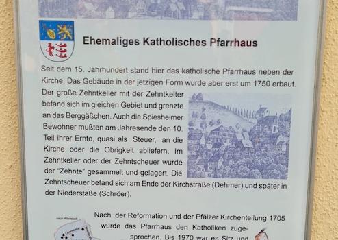 Nach der Pfälzer Kirchenteilung übernahmen die Katholiken das Pfarrhaus und auch die Baupflicht. Seitdem war es bis um 1970 Sitz und Wohnhaus der katholischen Geistlichen. Nach seinem Verkauf in private Hand wurde es mehrfach renoviert und präsentiert sich heute in einem sehr guten Zustand, eine Bereicherung für das Ortsbild.