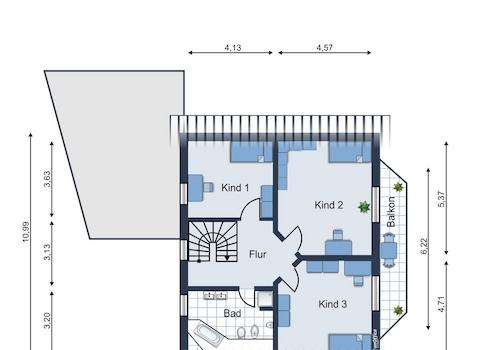 Im Dachgeschoss stehen zwei helle Kinderzimmer, ein gemütliches Elternschlafzimmer, sowie ein gut ausgestattetes Badezimmer mit Dusche und Badewanne zur Verfügung.