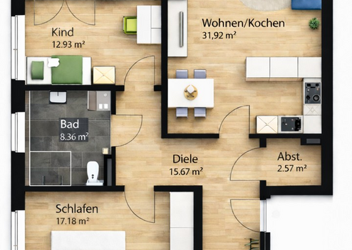 - Zusätzlicher Stauraum: Abstellkammer in der Wohnung, privater Kellerraum