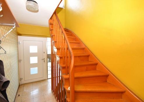 Über eine Holztreppe erreicht man das Obergeschoss. Das Obergeschoss ist in 4 Zimmer & Bad aufgeteilt. Der Balkon ist über die Küche zu erreichen. Auch dieser befindet sich in Süd-West-Lage.