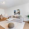 In allen Wohnräumen wurde ein pflegeleichter, heller Vinylboden in Holzoptik verlegt.